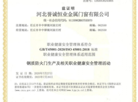 职业健康安全管理体系认证证书