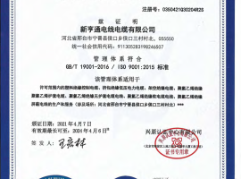 质量管理体系认证证书