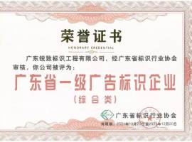 广东省一级广告标识企业