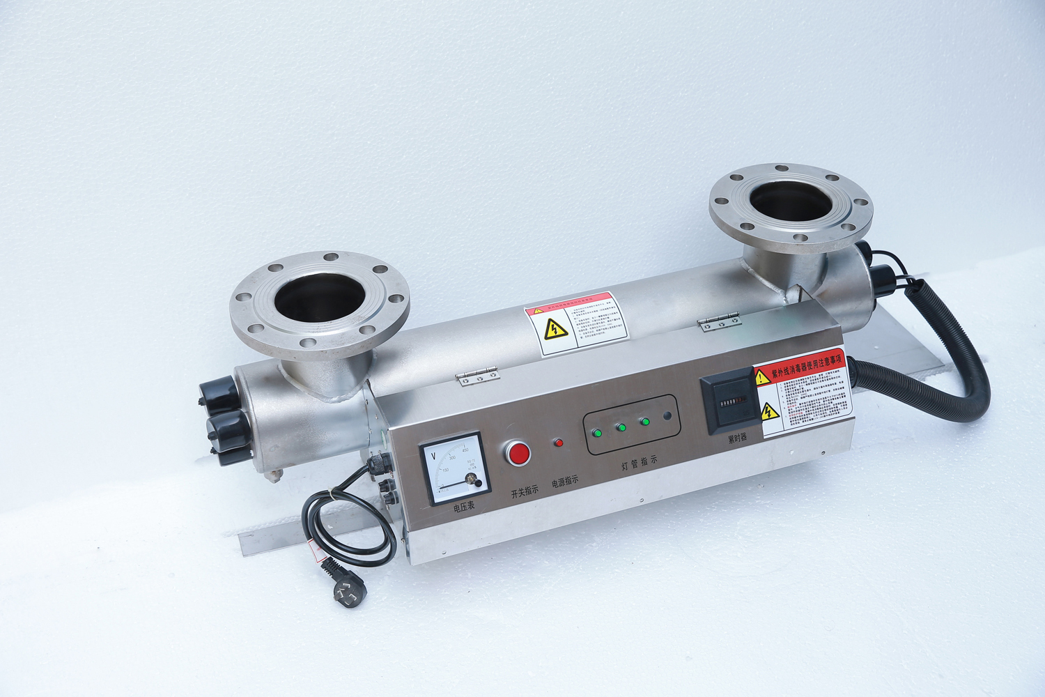 在系统中可实现灭菌、调节水质等功能。设备选型根据系统流量、工作压力综合确定。本公司销售各式紫外消毒器及臭氧消毒器。