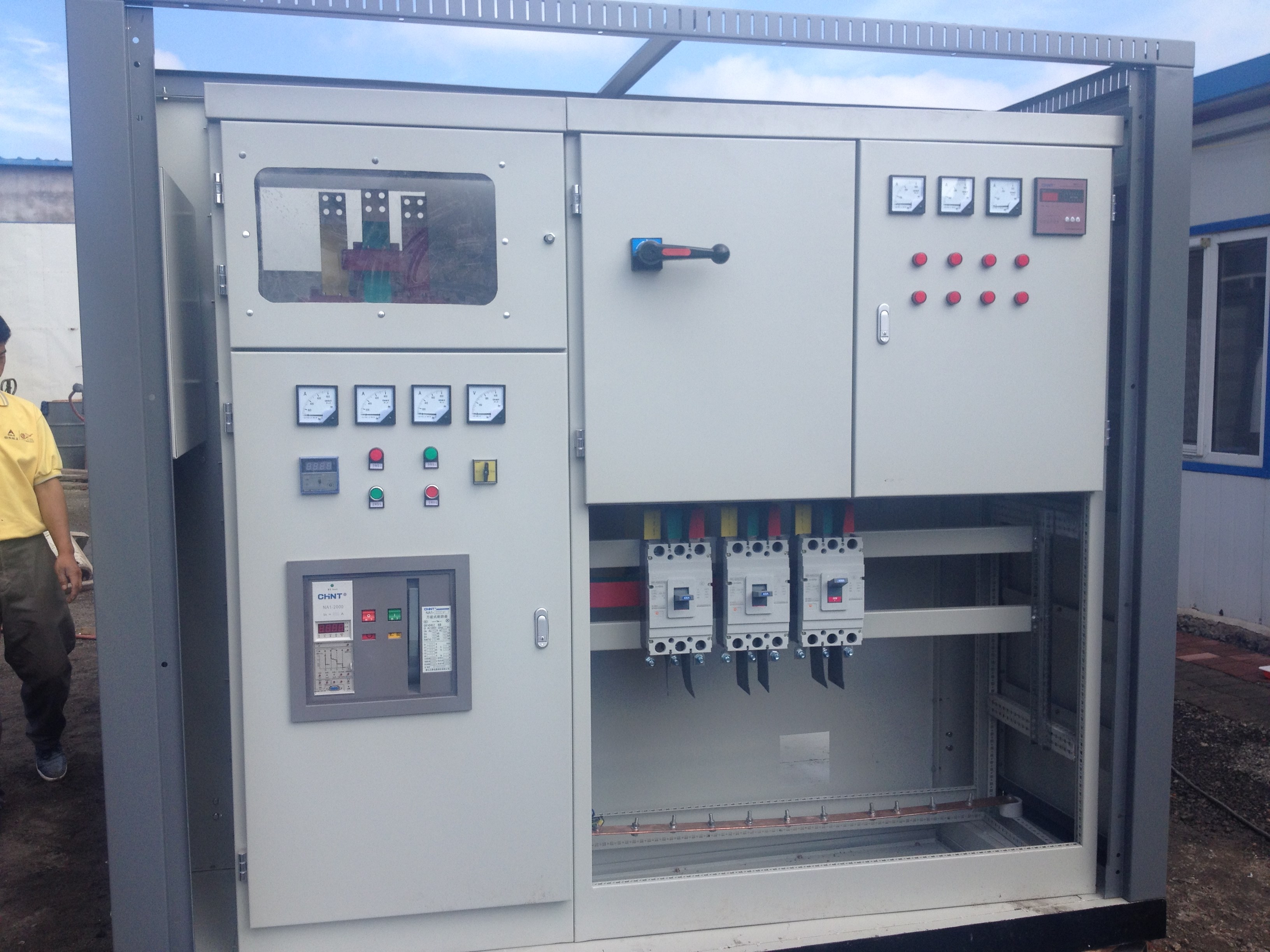 公司主要设备有数控激光切割机、数控折弯机、60吨和100吨冲床、剪板机、专业喷涂烤漆设备、数控母排加工机等大型数控、自动化先进设备,还有21KW的交流弧焊机、直流焊机和大量的工装模具设备。为保证产品出厂质量设有大电流发生器、耐压试验台、动力试验台和各种检测仪器、仪表等。