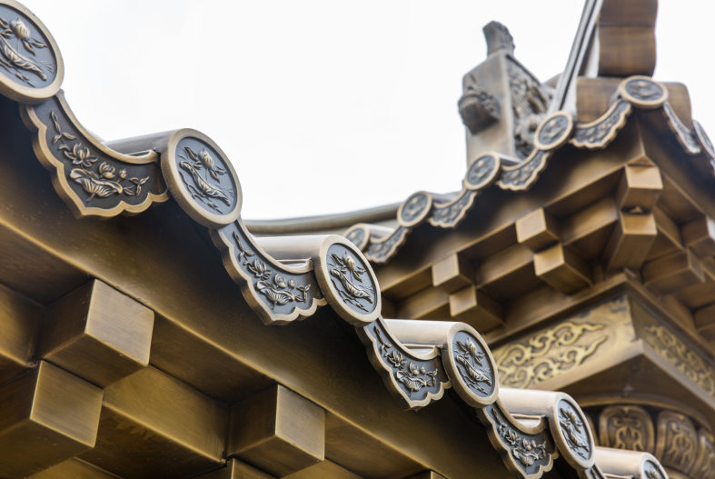 铜在建筑中的应用古已有之,清《颐和园》中记有“铜铸瓦、玉石砖、琉璃壁,虽有人作,宛如天开”。公司汲取5000多年的中华文化精华,集现代科技、民族文化、传统工艺于一体,亦在铜建筑艺术方面不断创新,并建立了有自主知识产权的创意、设计、生产制作紧密协作的质量体系,形成了以朱炳仁铜艺术为主的技术核心和品牌。