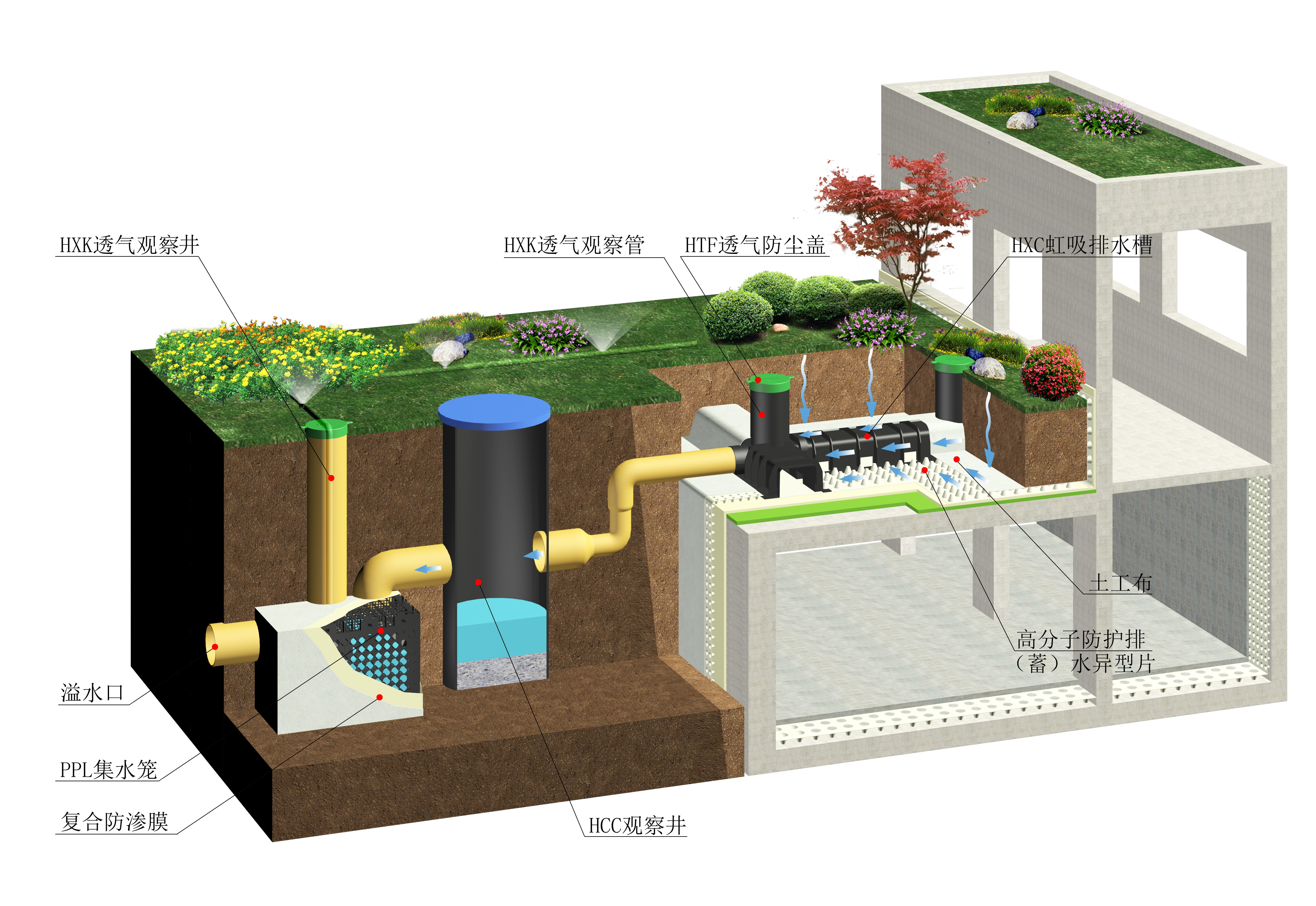 公司引领防水科技前沿技术,与上海沪望科技公司建立了长期稳定的合作关系,共同致力于推广PDS防护虹吸排水收集系统。该系统获列住建部《海绵城市建设先进适用技术与产品目录(第一批)》,是专门针对种植顶板的虹吸式排水加雨水收集系统,适用于建筑小区、运动场、高铁广场、地下综合管廊等。其最大特点是优化种植顶板结构层次,能有效的节省施工工期、节约工程成本,彻底改变了传统种植顶板的结构层次,取消了原有找坡层、刚性保护层、隔离层、(蓄)排水层、滤水层,真正实现了零坡度有组织排水,减低了防水层的水压,减少了渗漏风险。同时,该系统能排除种植土内多余水分,避免植物根系泡水,配以该系统特有的透气功能设置,可大幅提高植物的成活率。该系统末端储水实现雨水回收,回收的雨水可用于物业景观绿植浇灌、冲洗园路等,可有效节省物业成本和水资源。