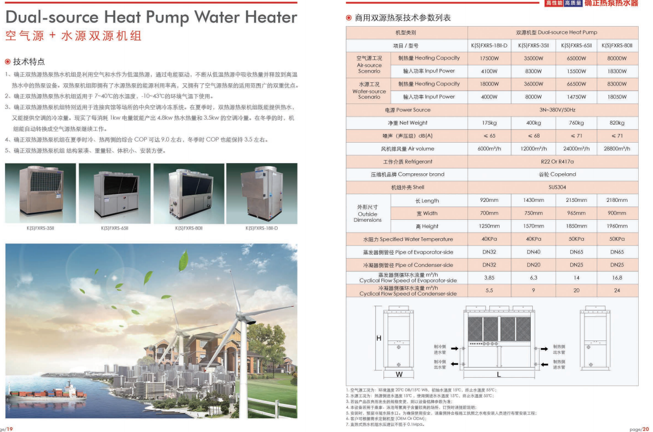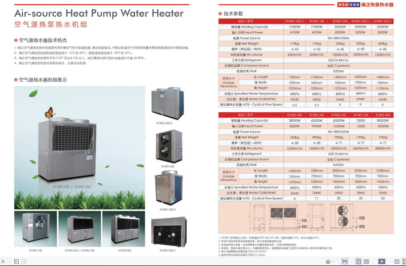 公司现已成功开发出空气源、水源系列多种规格的产品,比其它热水设备节能达30%~80%,而且产品具有安全可靠、完全环保的特性,可满足不同状况及不同客户的热水使用供应要求。是一种新型的高科技热能设备。