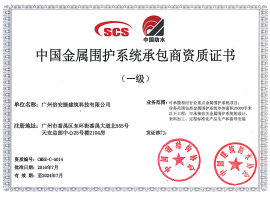 中国金属围护系统承包商资质证书(一级)