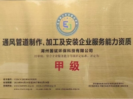 甲级通风管道制作、加工及安装企业服务能力资质