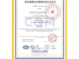 职业健康安全管理体系认证证书
