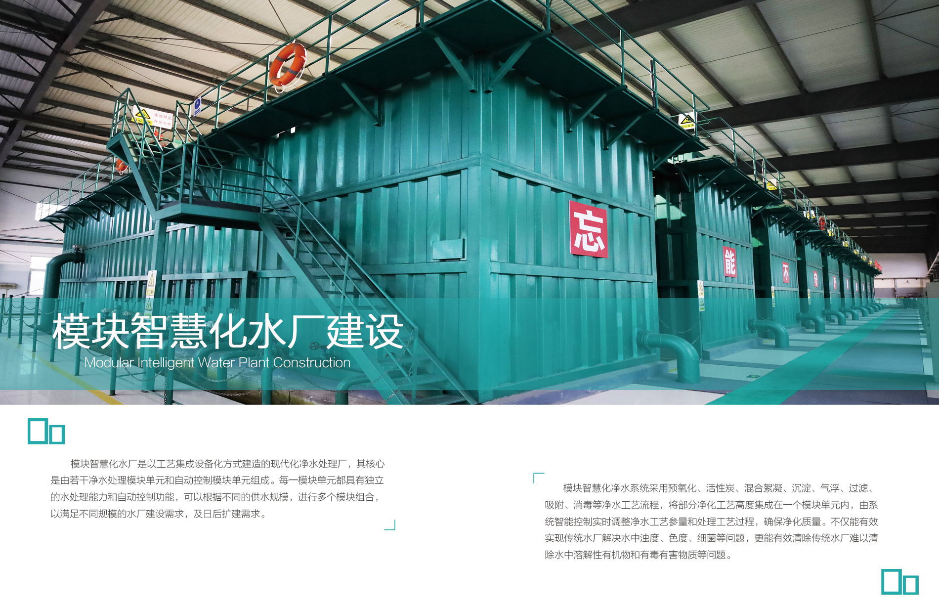 产品优势:模块智慧化净水系统采用预氧化、活性炭、混合******
