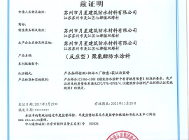 目前苏州月星防水通过ISO9001质量管理体系认证、ISO14001环境管理体系、ISO45001职业健康安全管理体系、能源体系、绿色产品认证等。苏州月星防水,以知行合一的口碑,始终如一的品质,赢得赞誉无数,先后获得国家高新技术企业、中国防水先进企业奖、上海市化学建材行业协会示范企业、上海市建筑防水材料十大品牌、苏州市建筑防水保温行业优秀企业、上海市化学建材行业五星级企业、上海市住宅修缮工程防水材料推优产品、资信等级AAA级企业、苏州市企业技术中心、民营科技企业等。