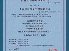 卓运公司具备《电⼦与智能化⼯程专业承包⼆级》、《建筑机电安装⼯程专业承包三级》、《施⼯劳务企业资质分包》、《节能技术服务认证证书》、ISO9001质量管理体系、ISO14001环境管理体系认证,ISO45001职业健康安全管理认证、AAA级信⽤企业,数据中⼼全国售后服务先进单位,政府采购优秀供应商。