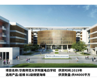 案例描述:华南师范大学附属电白学校,2019年选用我司岩棉,B1级橡塑海绵,供货数量44000平方